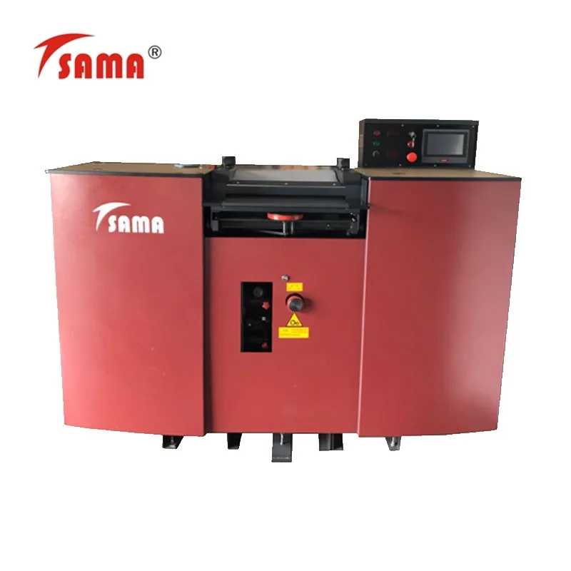 Machines which equalize the thickness of the leather, for the shoe upper parts, removing material from the flesh side. The machines can also carry out skiving edge through the use of geometry templates. Generally the range working width is including from 400 to 600 mm.