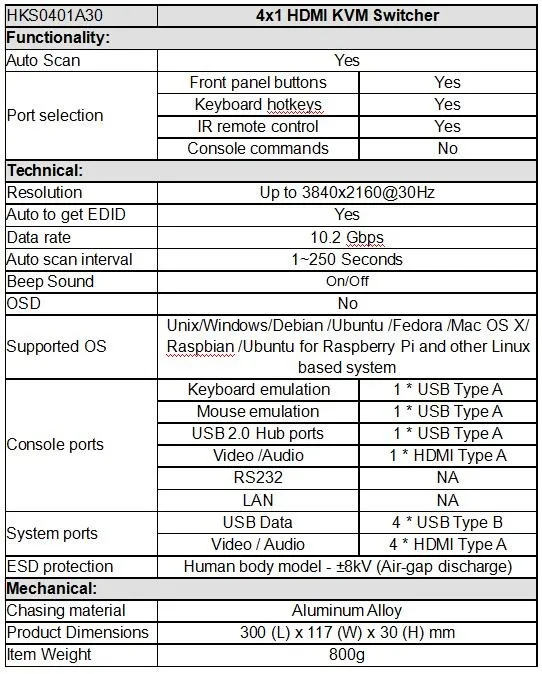 HKS0401A30 | 4x1 HDMI KVM Switch |