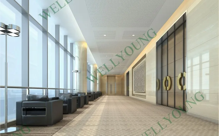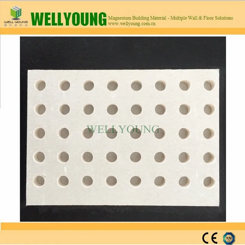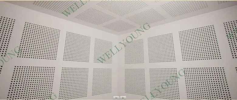 WELLYOUNG Acoustic Board is a perforated 12mm gypsum board with air-cleaning effect including black or white acoustical EU standard Ahlstrom non-woven fabric on the back(special color when ordering).