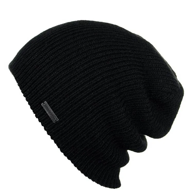 Light weight custom logo black slouch beanie for summer