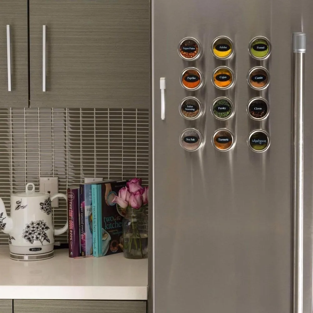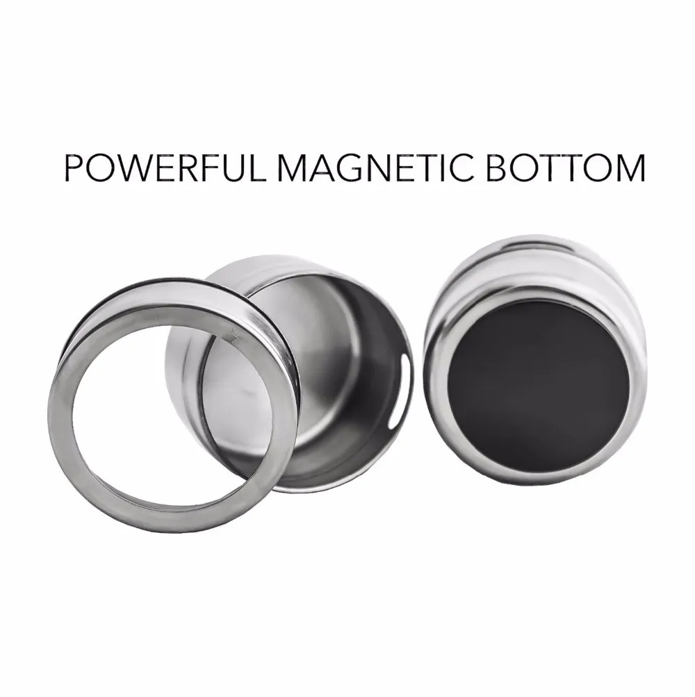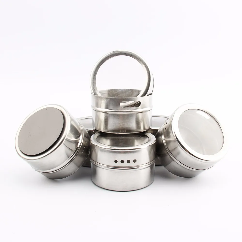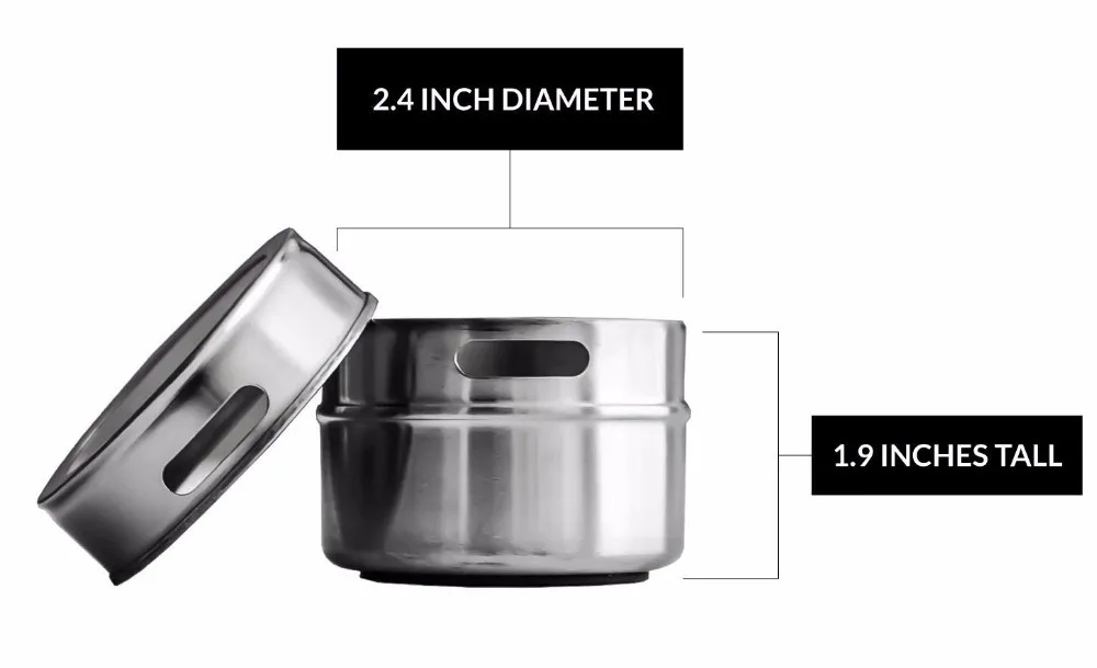 The tins feature clear lids for easy identification of contents,and have convenient sift or pour lids,just turn to shake or pour spice contents out. Also, the lids come off easily for washing and refilling, yet they are tight enough to keep spices from escaping when mounted.