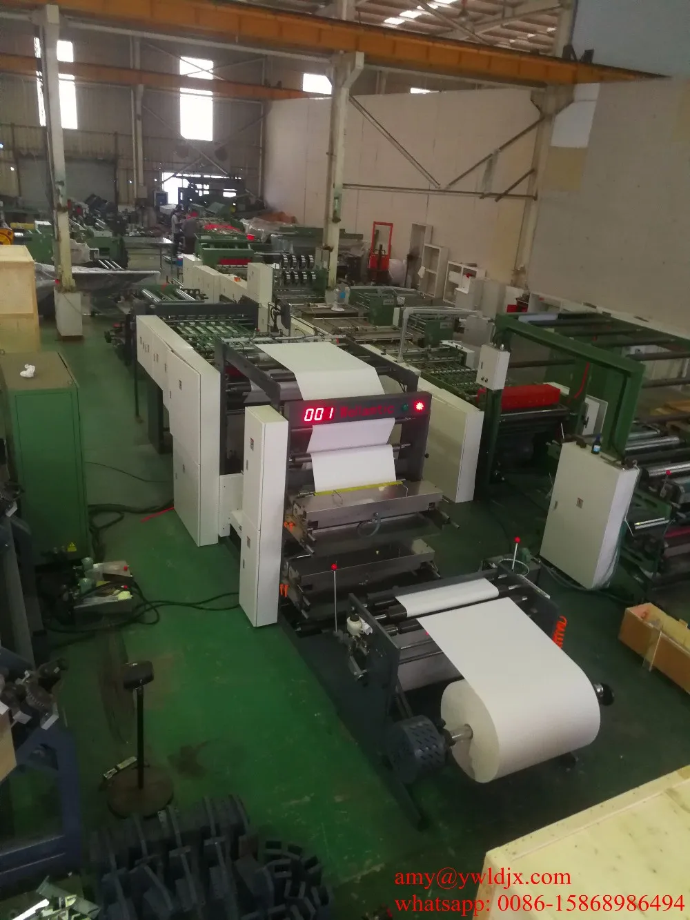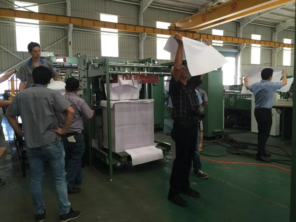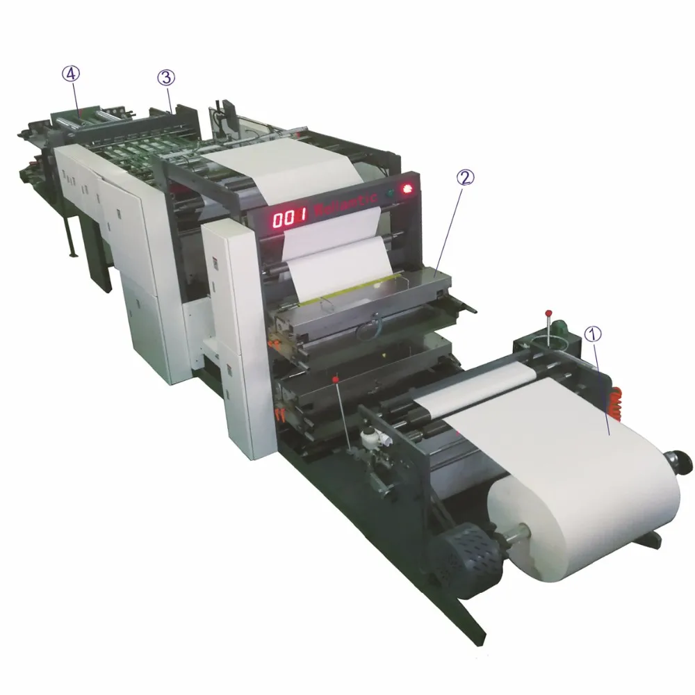 This machine adopts high techniques such as microcomputer control , electro-optical tracking, gas-liquid interaction, human-machine interface touch screen operation and ink flexographic printing as ink flexographic printing is environmentally-friendly and scientific. This production line is an ideal choice of mass production of staple-binding notebooks, with a perfect combination of 5 processes from reel one paper unwind , high speed flexographic printing with - 2/2 , paper cross cutting , collecting and finished sheets collect.