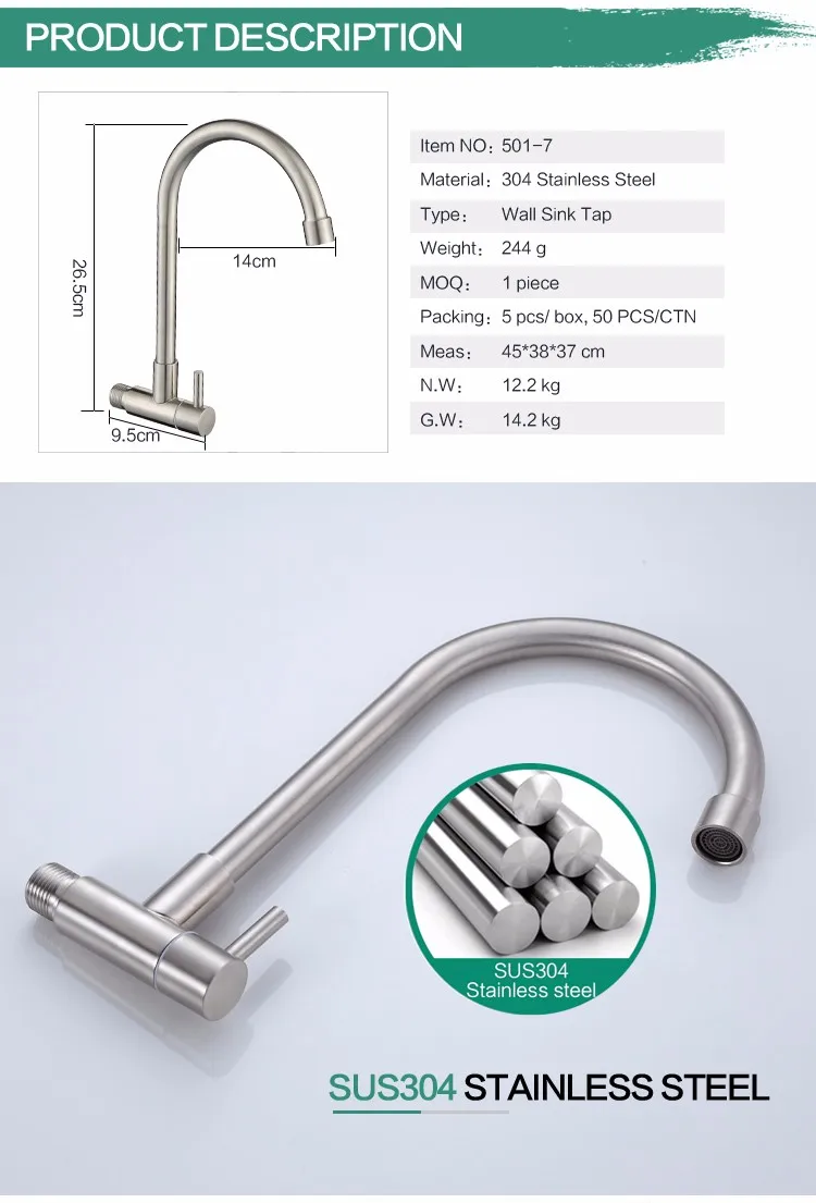 501-7 New Design Wall Install Stainless Kitchen Tap