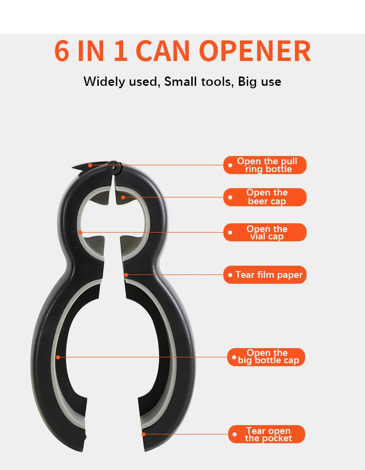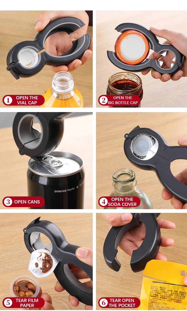 Hot selling 4 in 1 kitchen gadgets cooking tools multifunction non slip custom logo jar beer manual can opener
