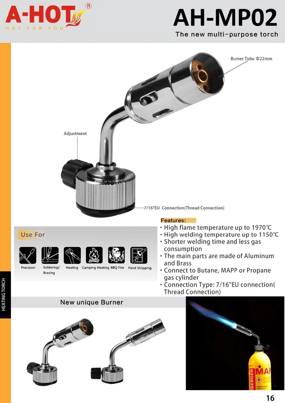 In Stock New Unique Burner MAPP Gas Cylinder Blow Torch Head