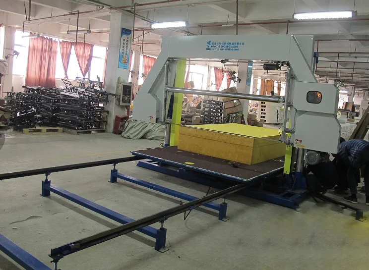 This machine mainly cut the block foam into slices. The worktable is adopt fully automatic digital control, setting the number by control box as need cutting thickness and foam density, the worktable automatically runs. It can adding to pressure roller, and in order to prevent cutting foam removing. Easy to operate, cutting precision.(worktable also choose adding to vacuum equipment).
