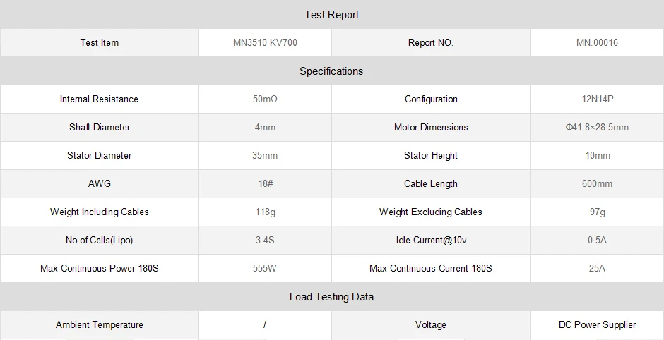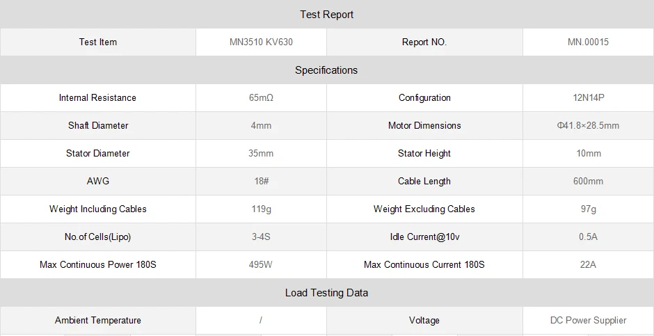 No.of Cells(Lipo) | 3-4S | Idle Current@10v | 0.5A | |||||||||||||||