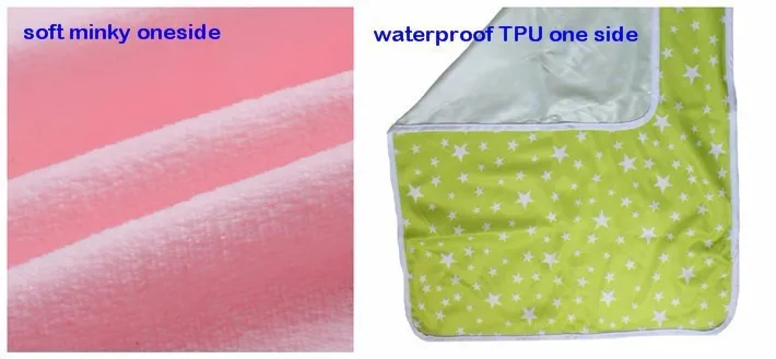 Minky, which is a polyester plush velour that feels like mink fur. It is a high quality, soft and strong, durable and comfortable fabric. Laminated with improved Thermoplastic Polyurethane (TPU), a composition specifically adapted to produce non-porous membranes exhibiting waterproof and vapor transmissible.