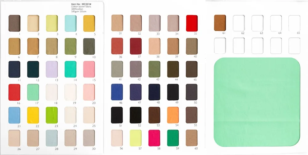 -Send a sample to test the quality and color card to choose the colors.