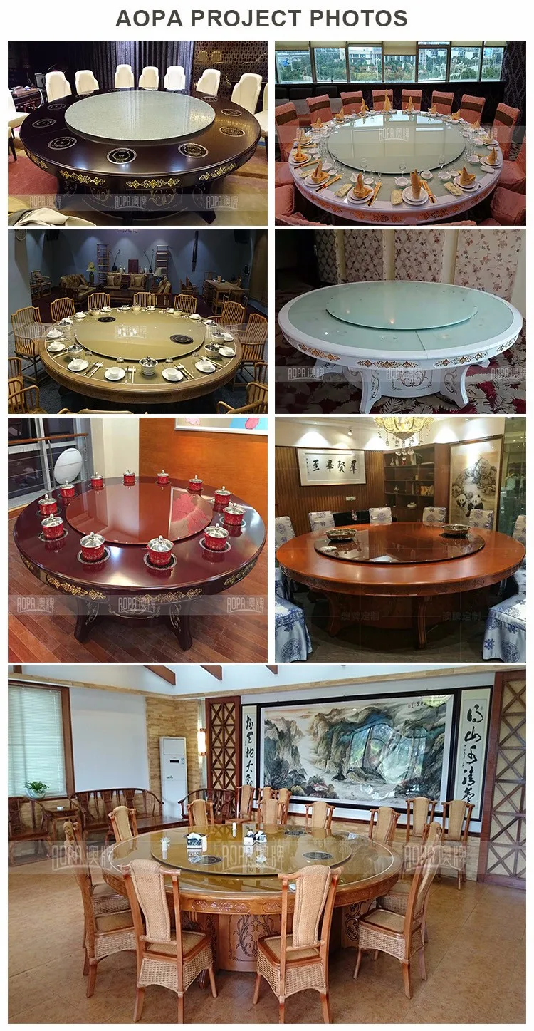 Choose AOPA multi-function solid wood tempered glass electric rotating dining table