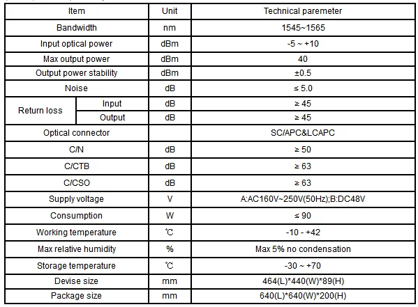 It can realize Single wave transmission, CWDM three waves in single fiber, flat gain.DWDM; it is important fiber transmission equipment of building large and medium - sized CATV network, mainly used in FTTH, FTTB, DBS, MMDS, FTTX pon.