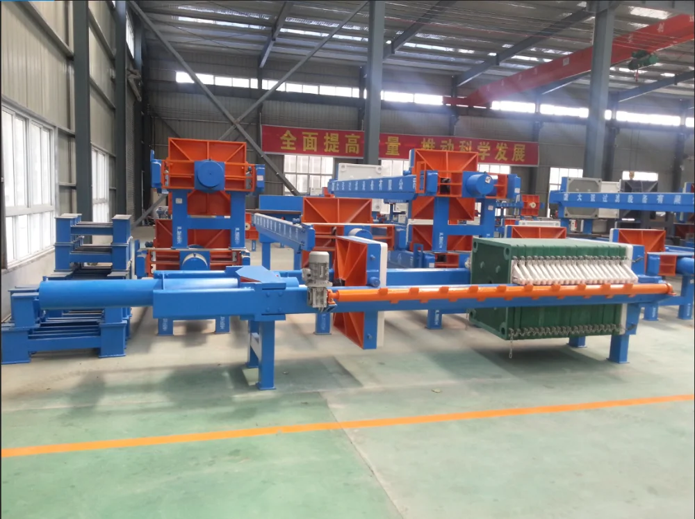 Automatic quick open filter press are driven by lengthened cylinder with extended frame, all filter plates are connected by stainless steel chains(or vane), driven by the pressing plate and they could all open at once. With the automatic shaking device, the filter press could discharge automatically.