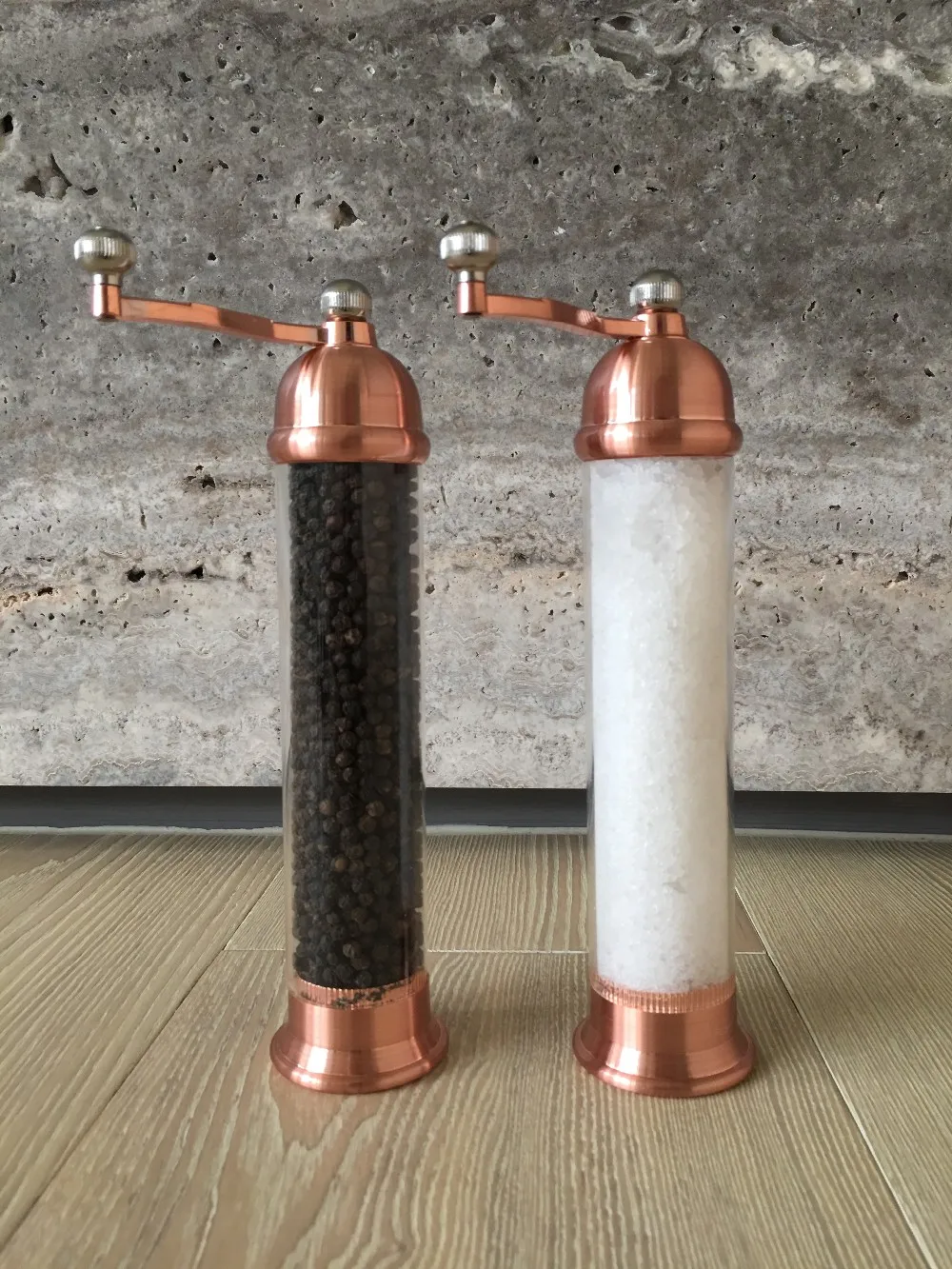 ● High-quality clear acrylic pepper mill with a stylish stainless-steel