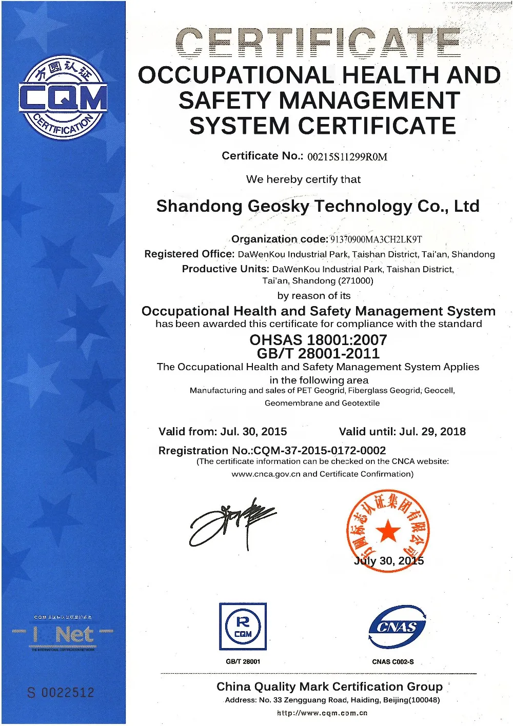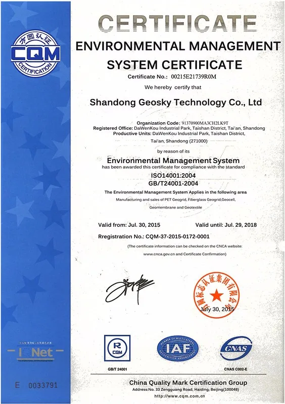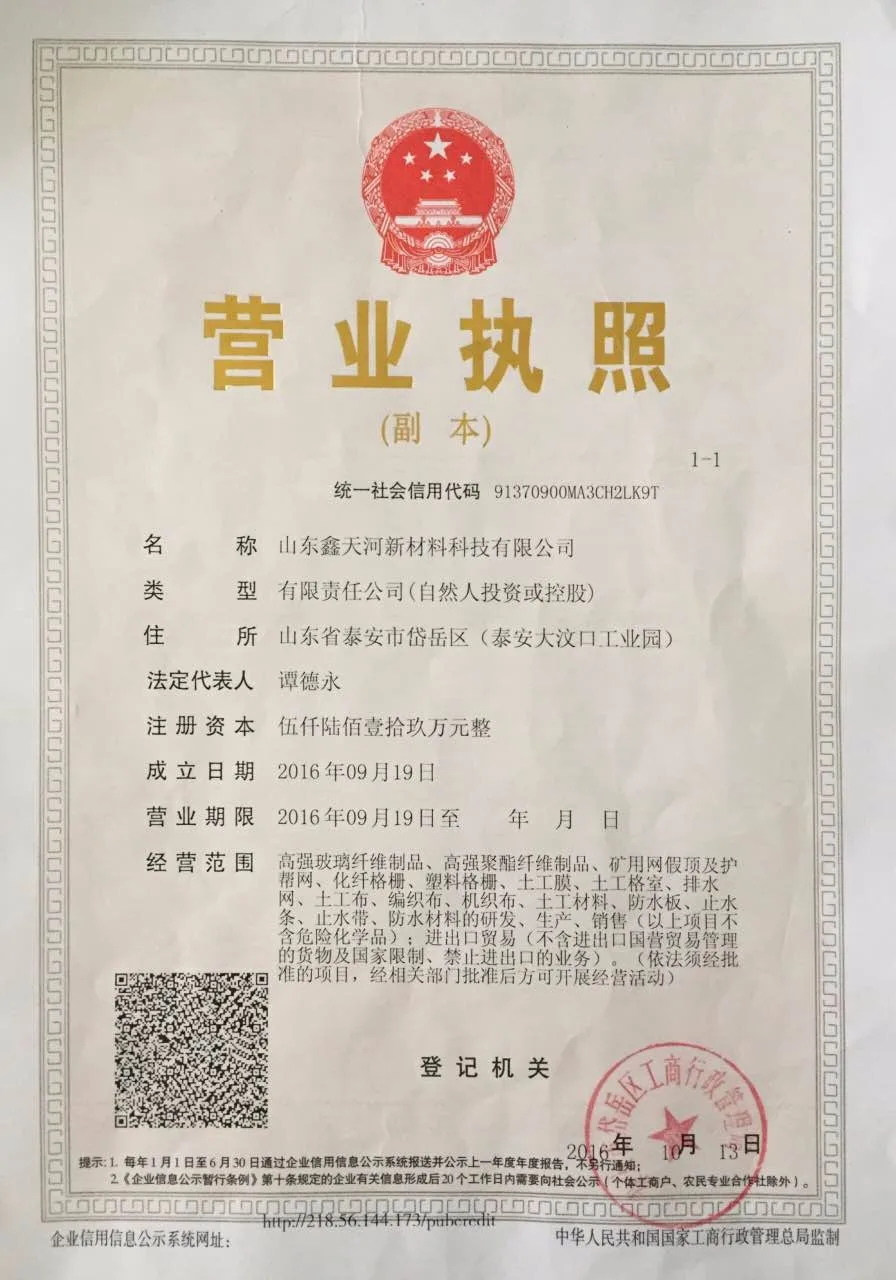 Our factory covers an area of 120,000 square meters. The existing production workshop and office building cover a total of 26,600 square meters. The product covers 6 categories, more than 60 specifications. The main products are high strength warp-knitted geogrid, high strength polyester fiber supporting and protecting mesh, geotextile, geomembrane, woven geotextile, waterproof board and other geosynthetic products. Our products have been exported to more than 20 countries, such as United States, Russia, India, Vietnam, Korea, Malaysia, etc, .