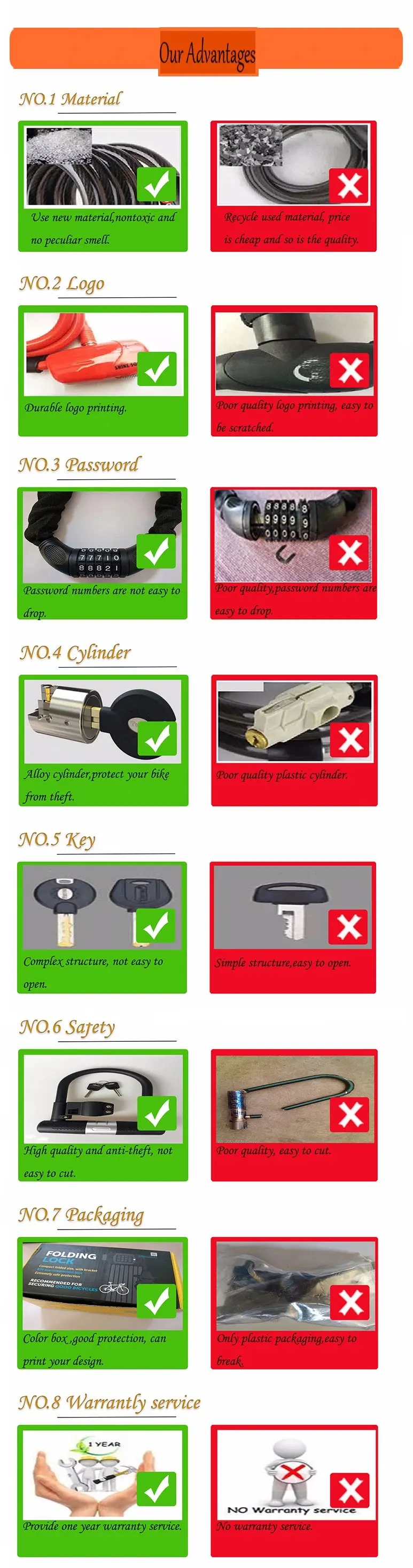 Why Choose Us | 1.Over several years experience on bicycle parts & accessories, we are involved inbicycle light, bicycle bell, bicycle computer, lock, helmet, basket, windmill, glovers, kickstand, pedal, saddle, freewheel, brake lever, crank and so on. 2.One year warranty for all products 3.All products comply with CE, RoHS certificate 4.Professional customer service team to answer your questions or fix problems | ||||