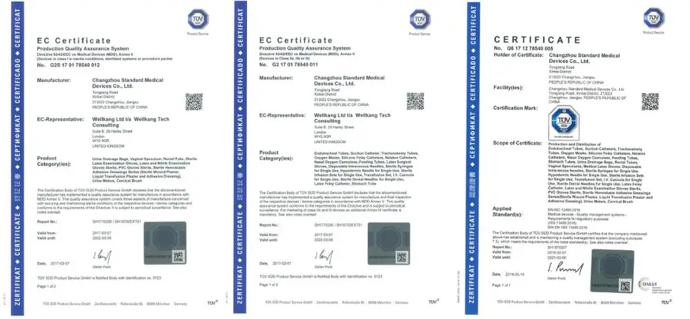 All the products supplied by Standard Medical are manufacturered under ISO13485:2003 quality management system,and marked CE by TUV germany.