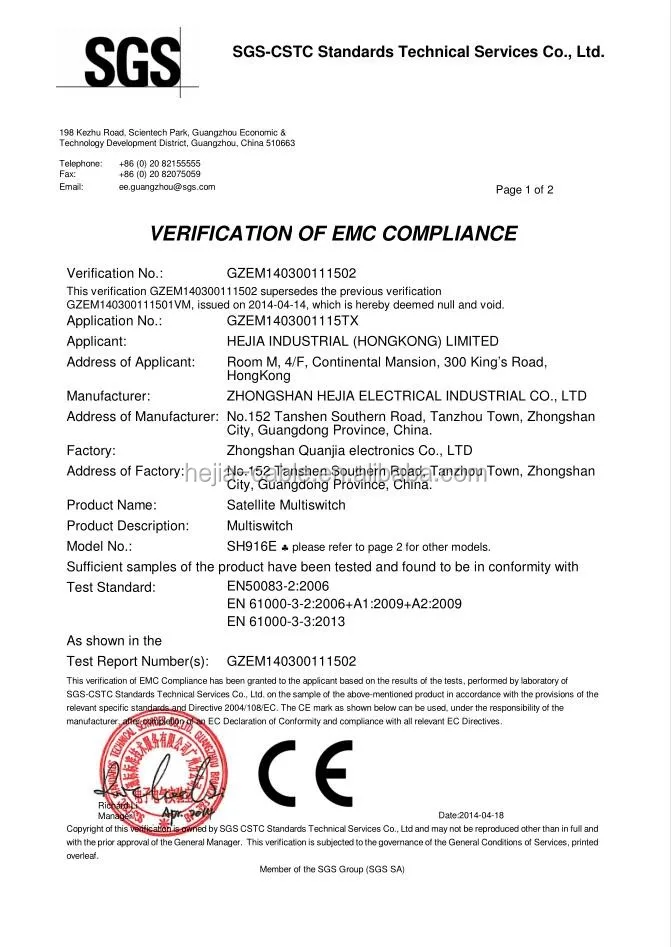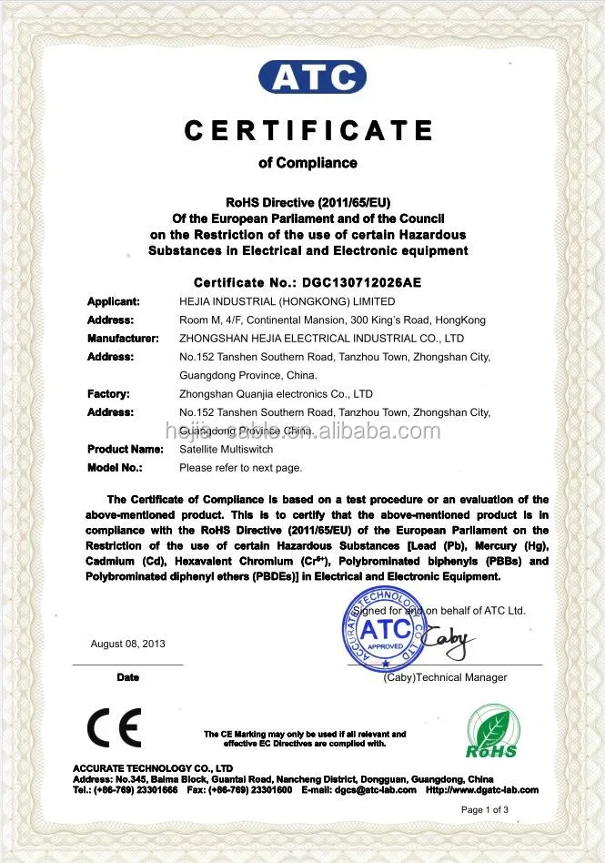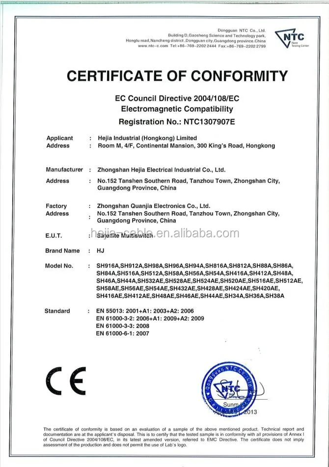 Hejia Group was founded in 2003 which located in Zhongshan city Guangdong province of China, is in the line of R&D, manufacturing and sales of cables (Vechicle charge cable, Solar cable, EV cable, Speaker cable, HDMI cable) and satellite accessories, extending switch accessories products, of high-tech enterprises for domestic and international market. In the year of 2013, Hejia group set up a subsidiary Jiangxi Hejia Technology Co. Ltd in Shangrao city, Jiangxi province.