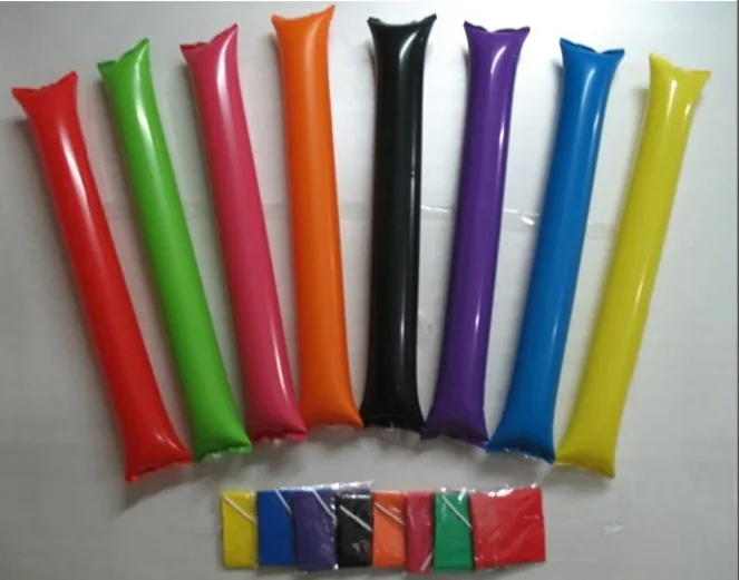 Simple packaging design, even thousands of inflatable sticks will not occupy a large area, each pack two inflatable stick, a blow pipe.