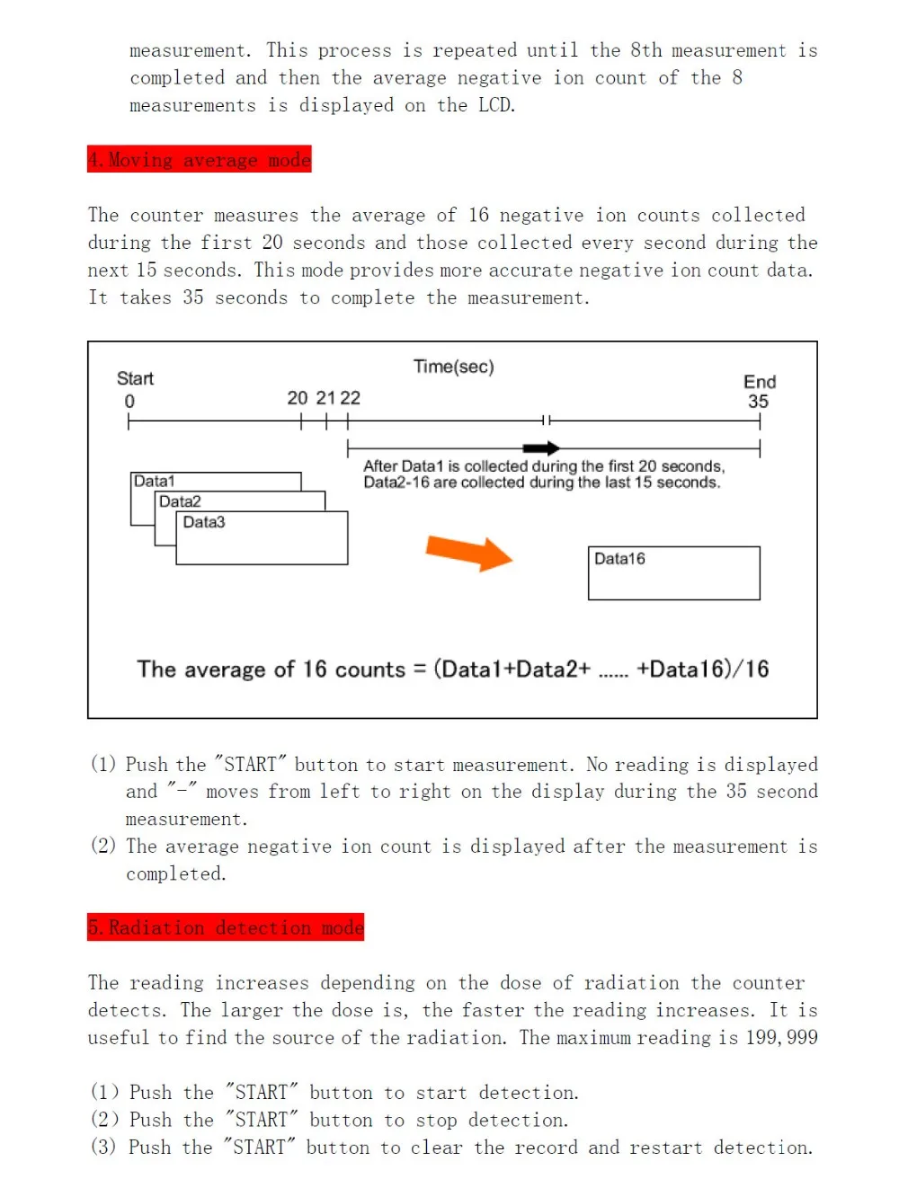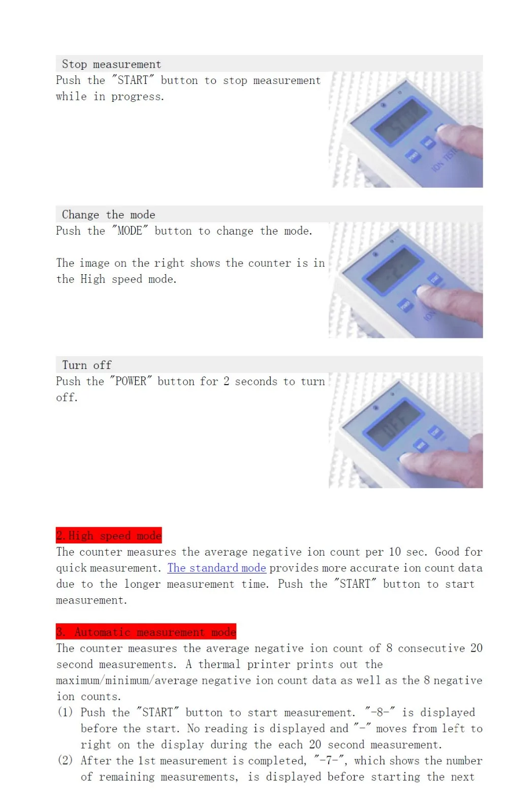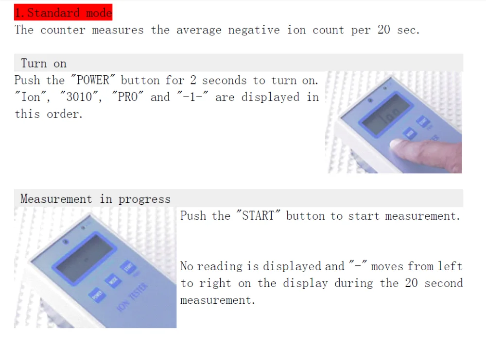 The Ion tester have 5 measurement modes.
