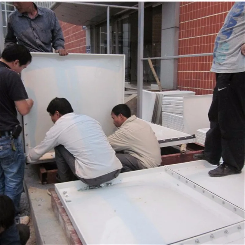 1. Standard Being the first recommended product by National Construction Material and Industry Bureau and Ministry of Construction, our SMC water tank lives up to the JC658 and 1-1997 technical request. The water quality complies with the Drinking Water Standard (GB5749-85) of our country. 2. Application Industry, Mining, enterprises, public institution, residences, hotels, restaurants, reclainmed water disposal, fire controlling, other buildings to serve as the water storage facilities for drinking water, other water storage usage. 3. The specification and performance of SMC mould pressing panel SMC water tank is made through high temperature, high pressure and mechanical suppressing. In the exterior design, the hollow radian at the center of panel helps to improve the tanks’ pressure resistance ability. In the meantime, there are bulge rims of 45 or 60 degrees on the panels, which leaves out connection parts, making it more flexible and adaptable. The specifications of water tank panels are 1000mm×1000mm, 1000mm×500mm, 500mm×500mm, the thickness include 5mm, 8mm, 10mm, 12mm, 14mm, 16mm. And 5mm panels specilized be used for covers.