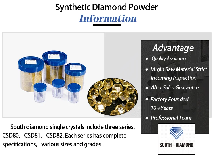 Consistent crystal color, regular shape, good transparency, high strength and great thermal stability, applied to make tools for sawing all kinds of hard stone and concrete, also suitable for geological drills.