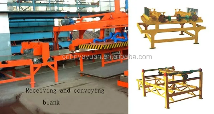 The machine has mature production technology, high degree of automation, easy operation, low labor intensity, high production efficiency. The whole machine adopts PLC automatic control system and pneumatic theory, and can produce asbestos tiles, calcium silicate panel, FC pannel and other decorating plank.