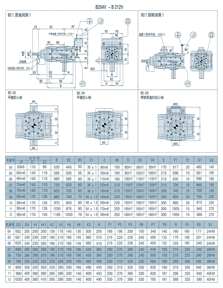 Output mode:solid shaft with flat key,hollow shaft with flat key,hollow shaft with shrink disk,hollow shaft with spline connection, solid shaft with spline connection, solid shaft with flange.