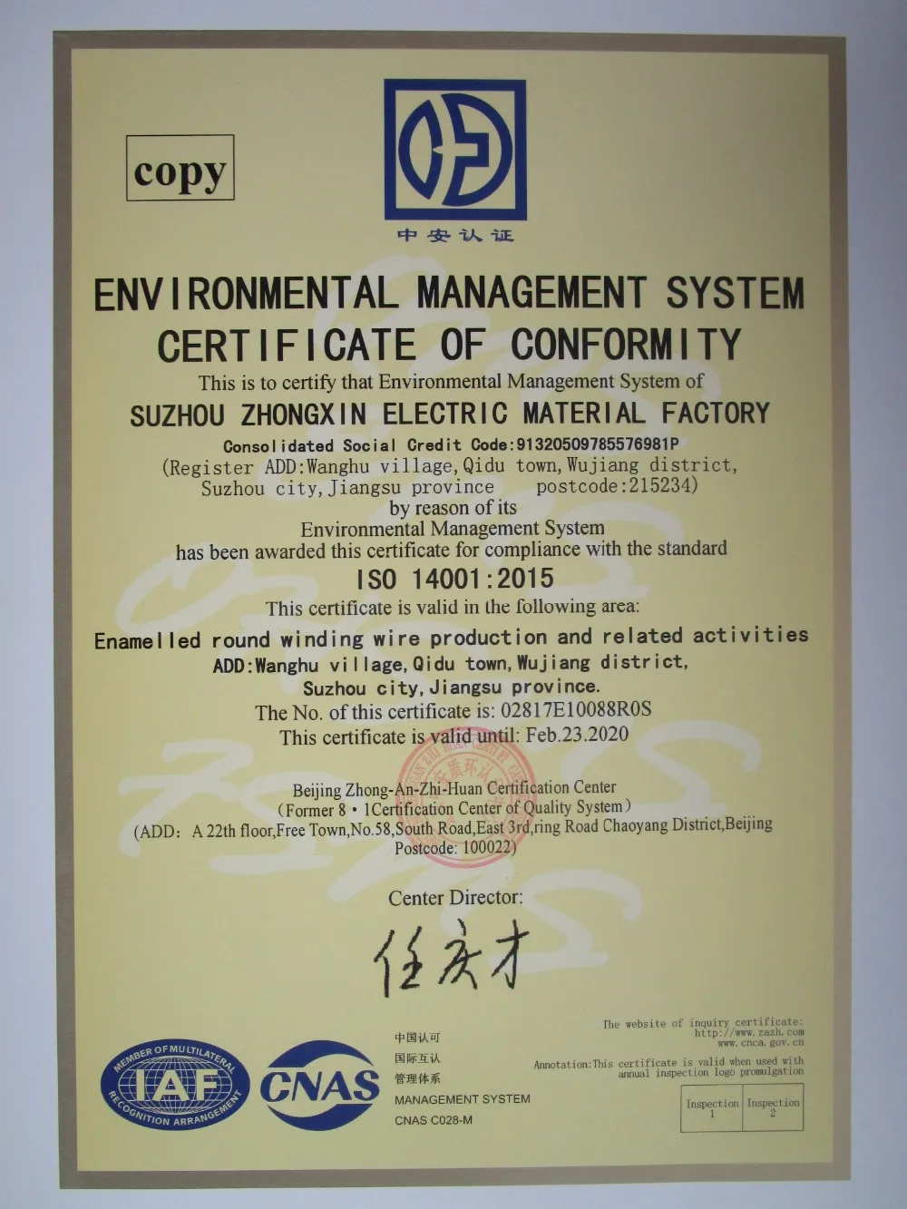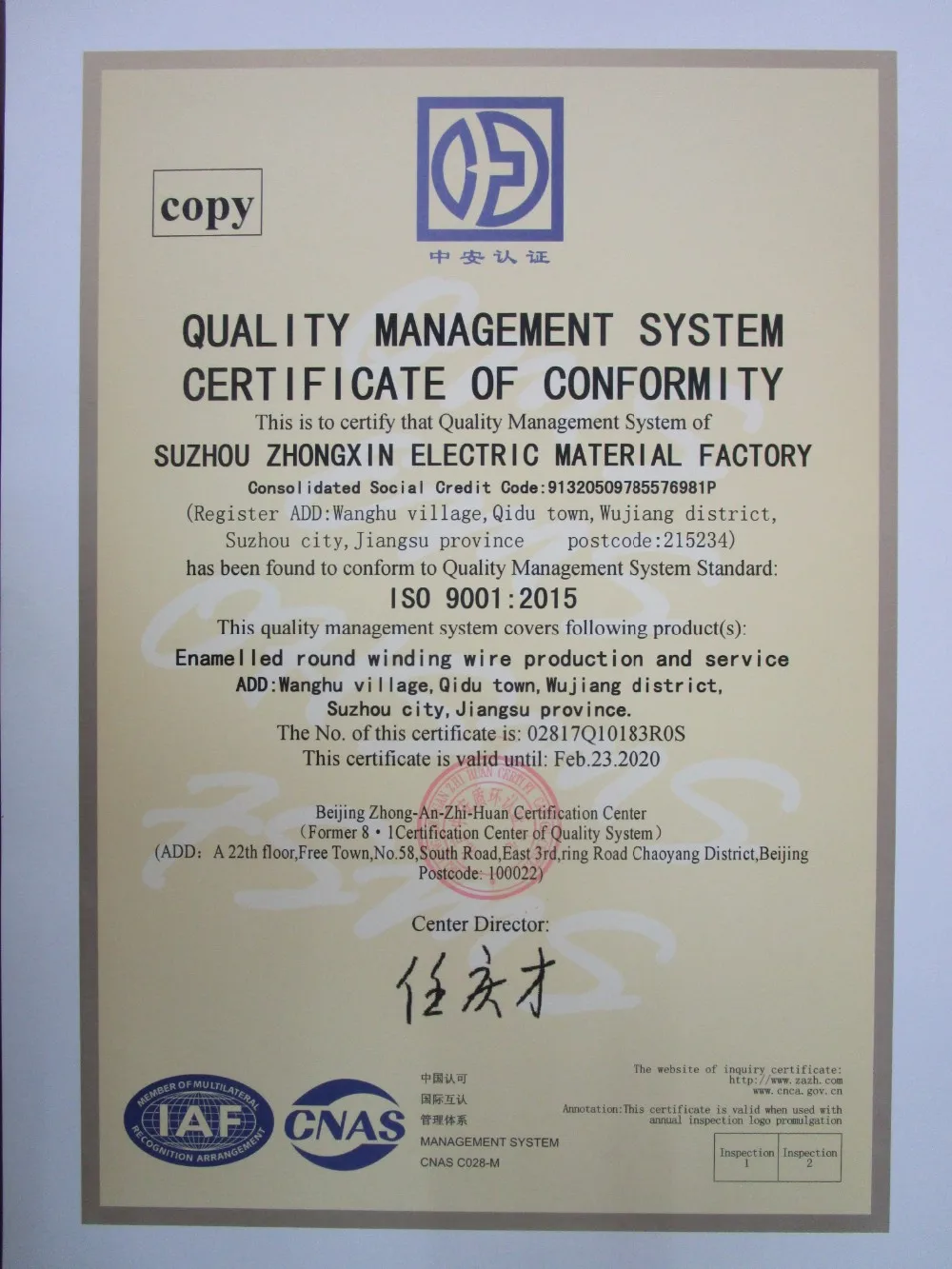Suzhong zhongxin electric material factory является профессиональным производителем эмалированной проволоки, загруженной в золотой район среди Цзян Су, Чжэцзян и Шанхай.