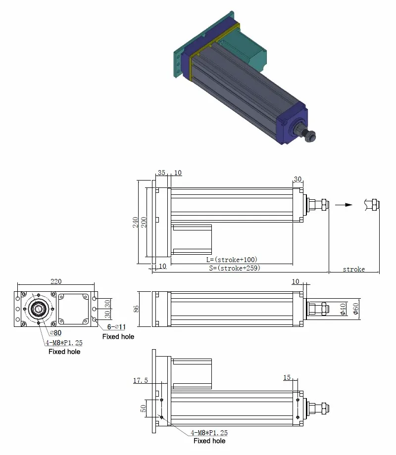 If your requirements are beyond the specification chart above, please contact us directly, we can able to customize according to customers' requirements on the load (up to 50ton), speed(up to 5000mm/s) and stroke (up to 3000mm).