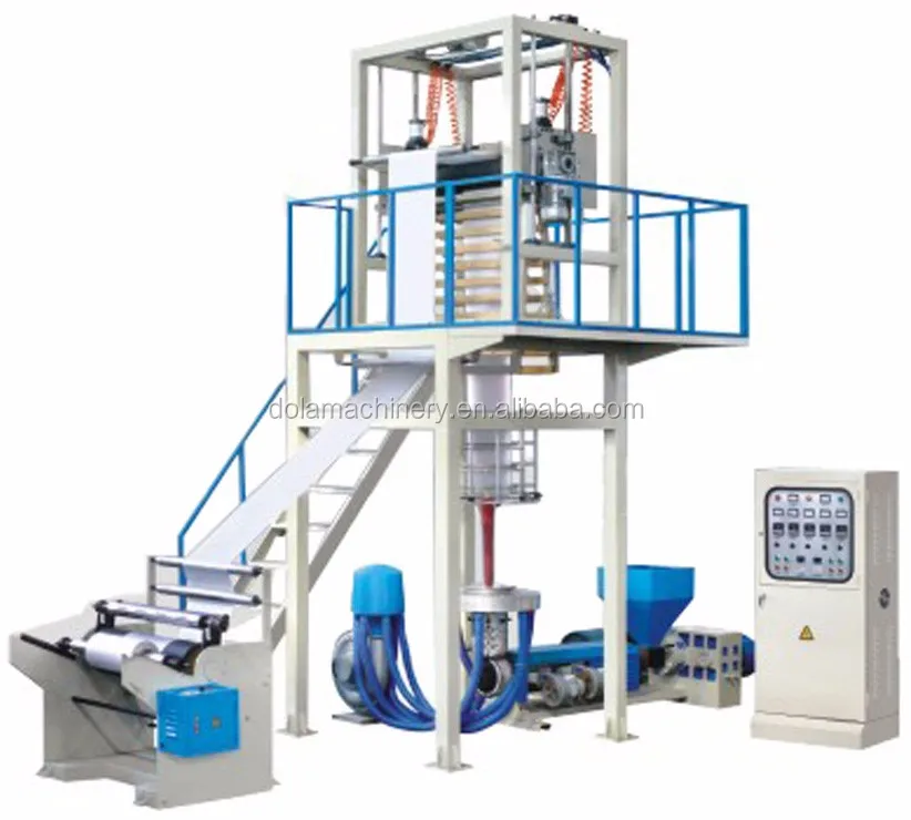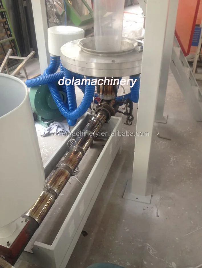 This film blowing machine, its extruder, cylinder and screw rods are made of quality alloy steel that have been nitrized and processed in a precision way. Hence it is sound in hardness, durable in corrosion resistance, The specially-designed screw is of sound quality in plasticizing, which helps increase the production capacity. It is applied to blowing the plastic films like low density polythene (LDPE), high density polythene(HDPE) and linear low density polythene (LLDPE). It is widely applied to producing the packing bags for foodstuff, clothing, rubbish bag and vest ones.