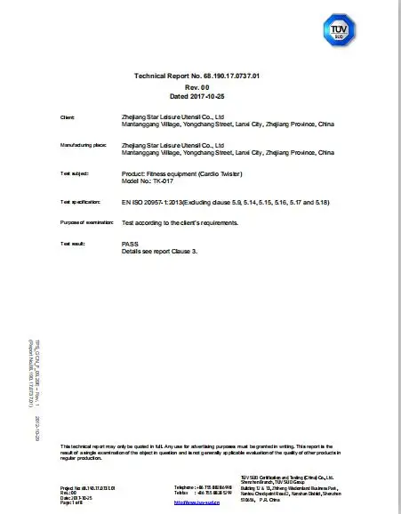 Zhejiang Star Leisure Utensil Co.,Ltd is a professional manufacturer of fitness equipment and leisure products since 2005,with registered capital of USD 2,100,000.