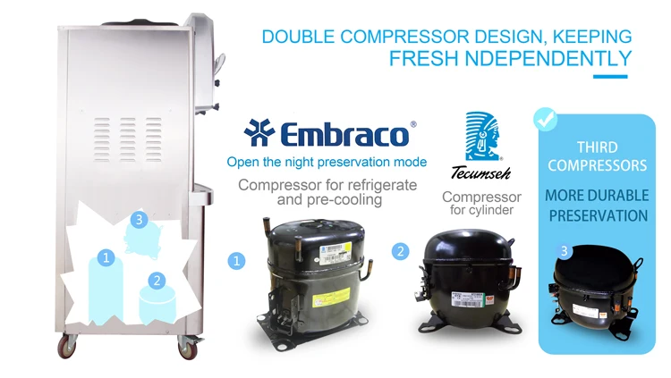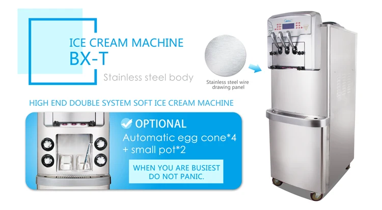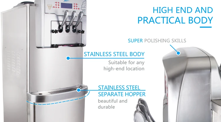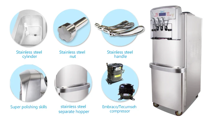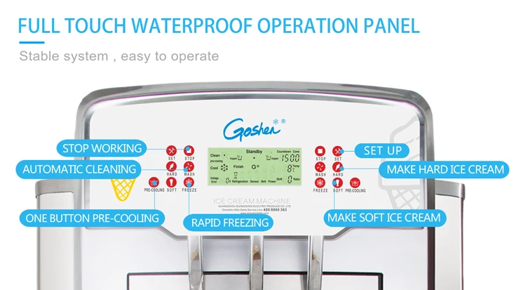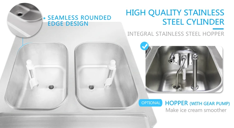 4.Make pasteurization to raw material hopper and frozen cylinder automatically to ensure the food safety.