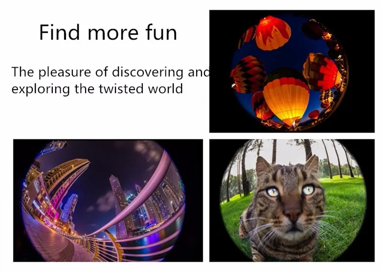 FISHEYE LENS | Fisheye camera has a strong visual effect,a magical feeling, photos will show circular arc. | ||||