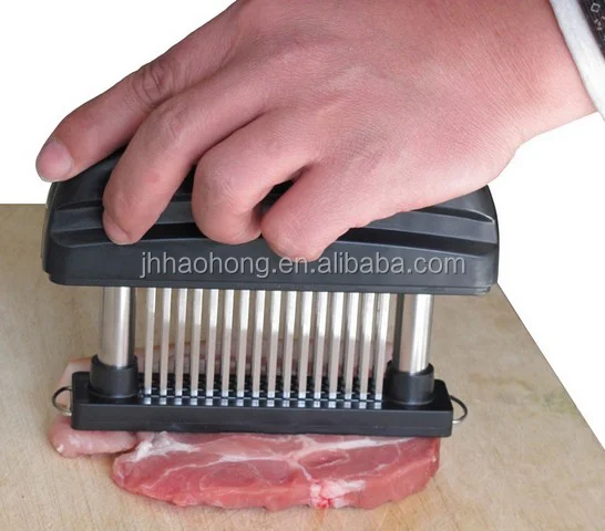 This meat tenderizer steak needles with stainless-steel prongs to break down tough meat fibers,