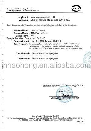 SPECIFICATIONS FOR 48 Needles meat tenderizer | ||||||