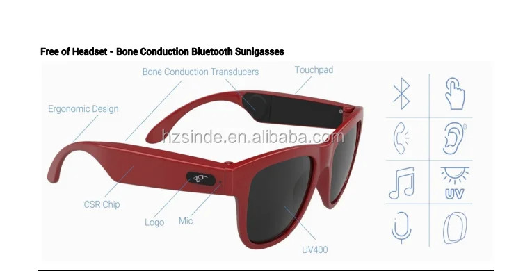 Built-in bone conduction transducer on both legs, you don't need to wear headset or earphones, and you still can hear music and take a phone call, it is a totally new experience.