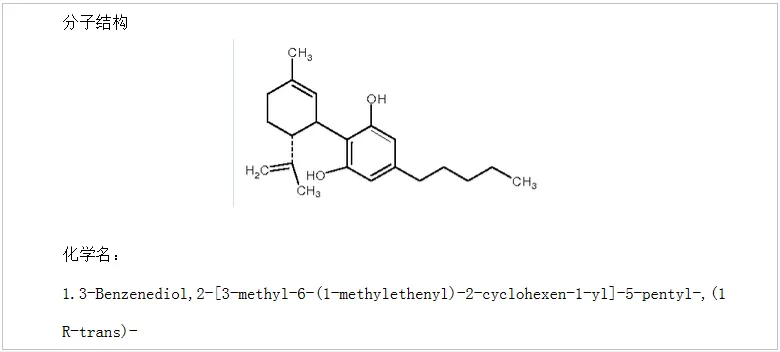 Formal name: 2-[1R-3-methyl-6R-(1-methylethenyl)-2-cyclohexen-1-yl]-5-pentyl-1, 3-benzenediol