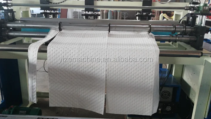 Machine components: 1) embossed composite host 2) Ultrasonic control cabinet 3) Finished winders 4) Fabric Storage Racks