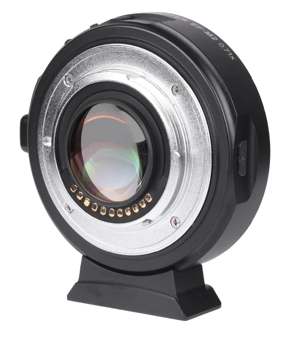 Viltrox EF-M2 mount adapter is designed to allow Canon EF-mount series lens to be used on M43 camera. Plus 0.71 based on the original focal length (equivalent focal length=focal length x0.71), which help enlarge 1 level aperture. Build-in 4groups, 4pcs optical glasses, AF(autofocus) and adjustable aperture,etc.