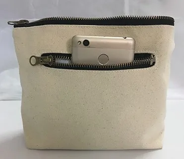 9*7 inch grey canvas zipper pouch bag with personalized logo, gray cotton pouch / canvas make-up bag, small cotton pouch | ||||||