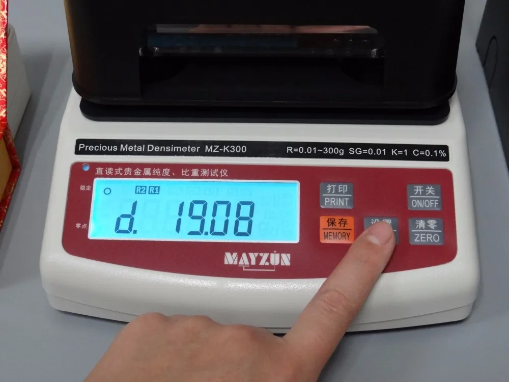 Place gold on test board to measure weight in air,and then press MEMORY key button to memory.