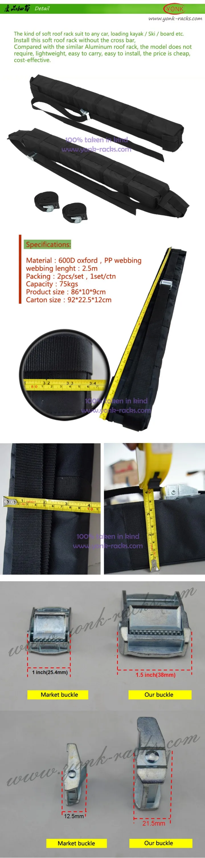 Includes 2 pcs 3M tie-down straps(material:PA6) with cam lock buckles