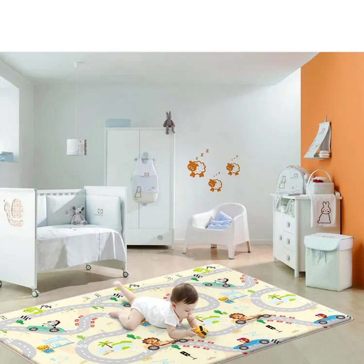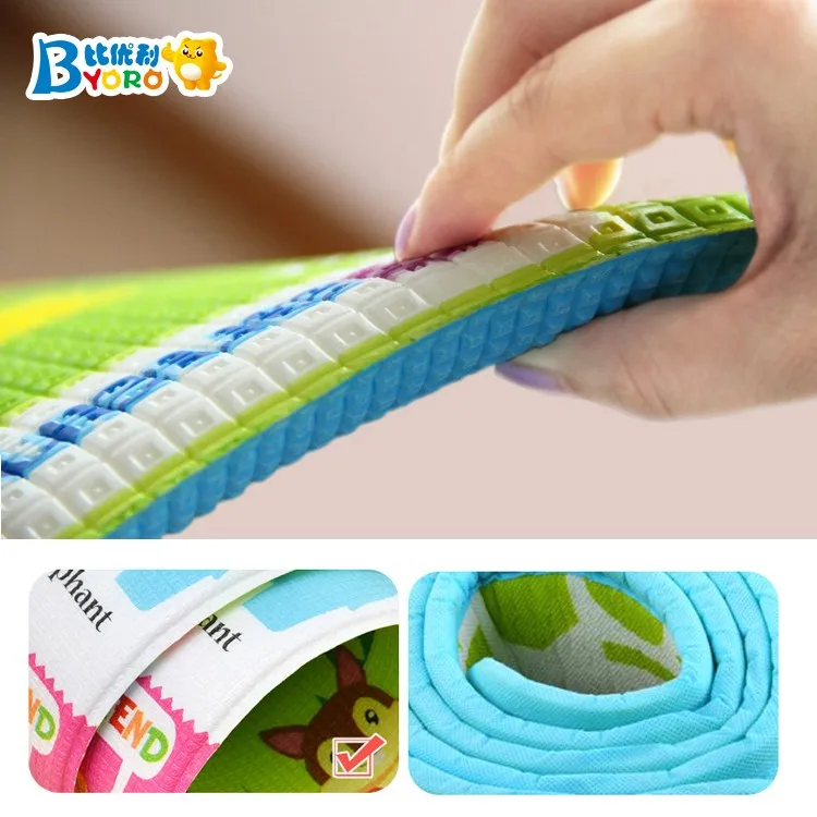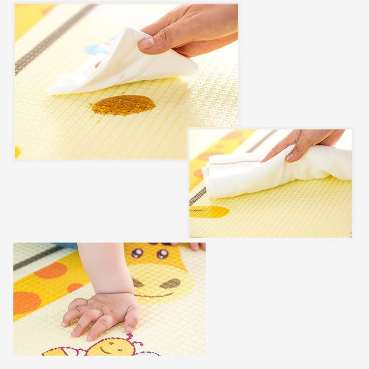 Compared with other material like EVA,EPE,and PVC, the pu foam material is softer. It's easy for rolling it up.And it can protect your baby skin as our TPU film Comply with EU Rohs, PAHS, 12P,