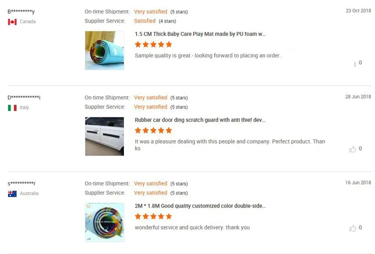 A: We can offer you small free PU play mat samples. New clients are expected to pay for the delivery cost, this charge can be deducted from the payment of formal order.