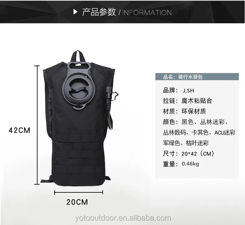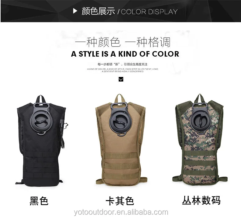 This all purpose Tactical water bladder backpack is suitable for all kinds of outdoor activities especially hiking,camping!