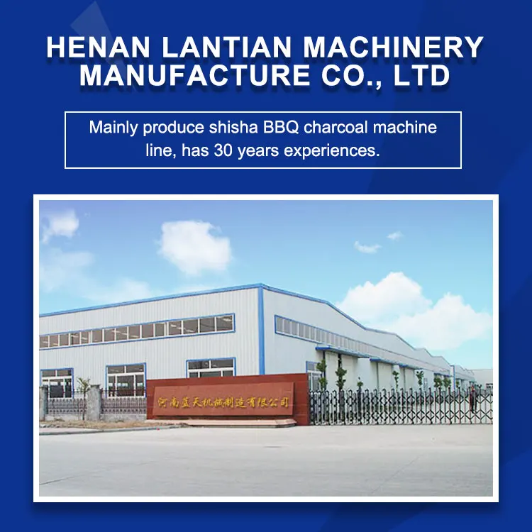 1. Established in 1980s, our company covers an area of 100,000 square meters which includes 66,000 square meters of workshops. We have the most advanced technology, most strict process, from material purchase to the finished products, all strictly according to the national quality inspections standards. It mainly specilize in charcoal making machine, sawdust briquette machine,briquette machine,powder making machine,extruder machine, BBQ machine,honeycomb briquette machine,carbonization furnace,heat pump dryer and so on.