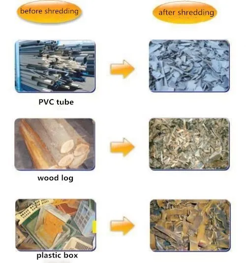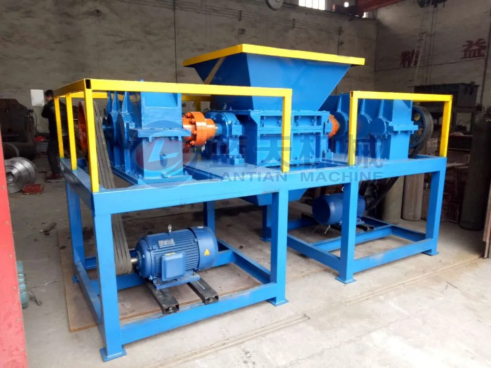 The shredder consists of main machine, control cabinet, and two conveyors, one input conveyor and one output conveyor. The main machine consists of two motors and two reduction boxs, frame, bearing box and feeding systems. Its two shaft shredder, incase of stopping when put too many materials, it can reverse automatically. And the thickness and diameter of the cutter can adjust according to your requirement. This double shaft shredder machine main use for recycling industry and all kinds of wastes, such as rubber, timber, plastic, paper and etc.