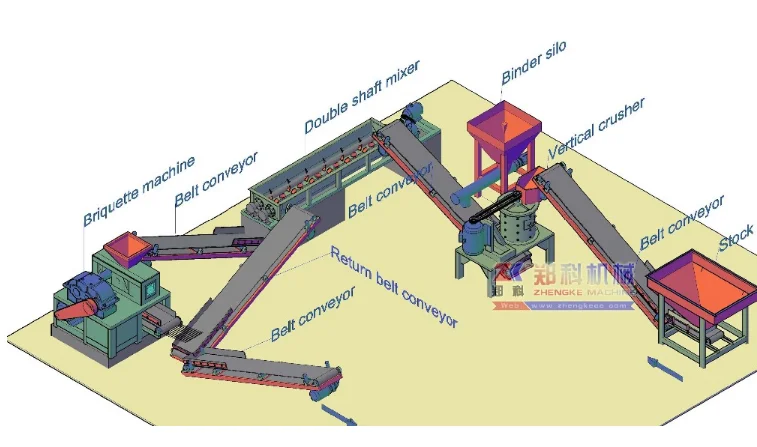 2. During briquetting, the moisture should be controlled 5-12% (The moisture has big impact on the briquetting, the water should be balanced.)