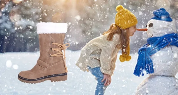 Winter warm artificial leather rubber sole snow women boot