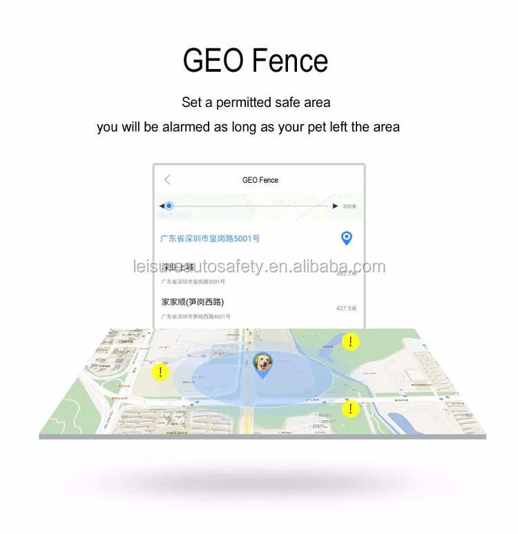 5.Fence: Designate an area on the map by setting the device as the center point and the alarm will be triggered off immediately once the user of the device goes into or out of this area